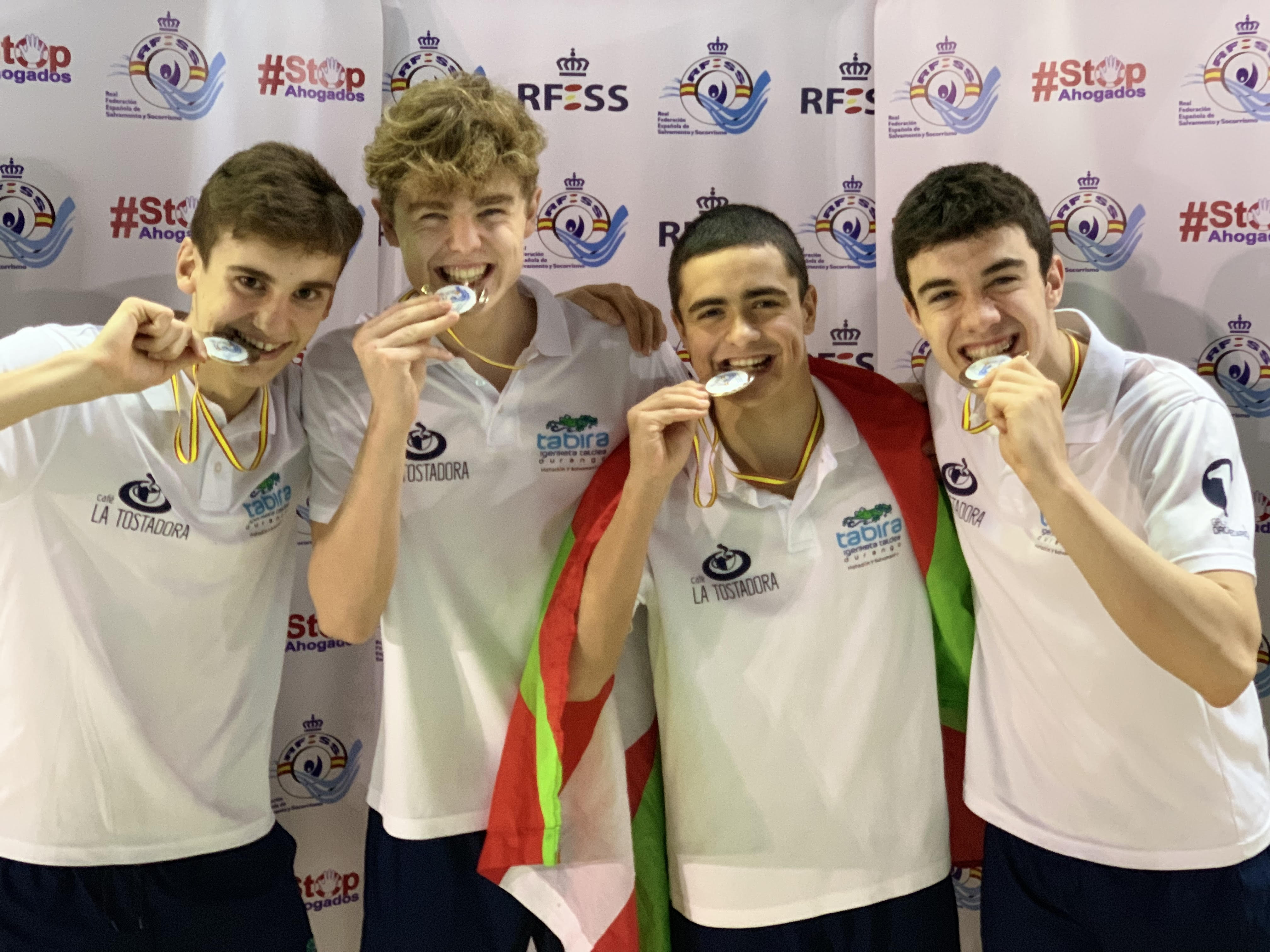 Los integrantes del relevo del equipo de Tabirait Salvamento SUBCAMPEONES DE ESPAÑA EN EL 4X50 OBSTÁCULOS (Adrian Fernandez, Iñigo Arroiabe, Erenoitz Barrenetxea y Julen Azkarate). En las pruebas individuales destacar: CATEGORÍA FEMENINA Natalia Martinez 6º en el 200 Obstáculos 13º en la prueba de 100 combinada CATEGORÍA MASCULINA Julen Azkarate 8º en el 100 Combinada…
